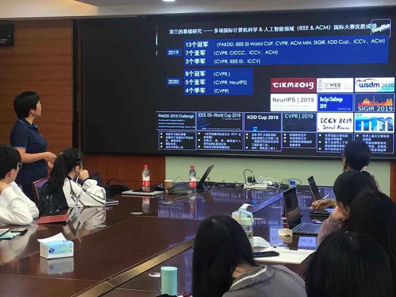 讲座中,刘园桂女士先从人工智能发展的国际与国内发展趋势、政策导向和现有技术等三方面,介绍了人工智能当前的发展背景、趋势以及面临的挑战。接着,她并从商业焦点、政策倾斜、技术革新三方面介绍阐述了人工智能当前发展的优势。最后,她又以深兰公司为例,刘园桂介绍了公司目前已有的人工智能应用产品以及人工智能企业的团队架构和运作模式。