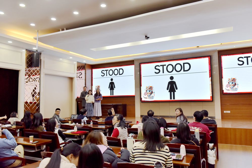 猜字谜游戏激发了老师们的智慧火花。巧妙设计的字谜游戏,充满趣味性,老师们纷纷举手抢答。无论是成功解谜后的欢呼雀跃,还是面对难题时的思考沉吟,都让老师们乐在其中。