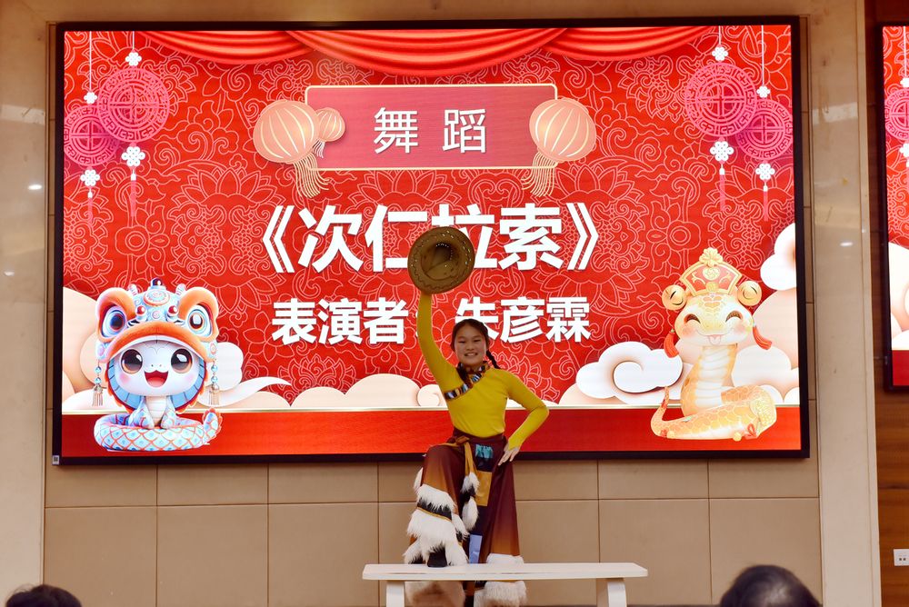 朱彦霖小朋友的藏族舞蹈《次仁拉索》,展现了一种神秘而美丽的民族风情。她身着华丽的传统服饰,手持牛仔帽,伴随着悠扬的音乐,朱彦霖用身体语言讲述了高原上小朋友充满童趣的生活,让观众们领略到了藏族小朋友对生活的热爱。