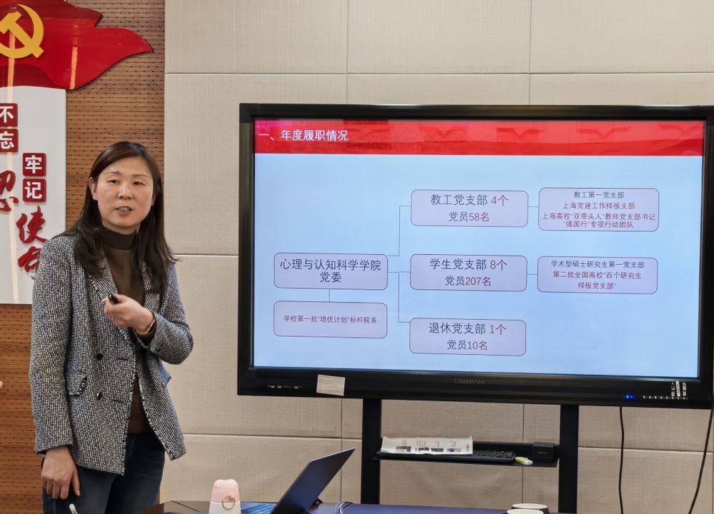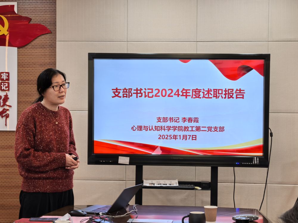会上,院党委书记方媛作书记抓党建工作述职交流。她从深入开展党纪学习教育、增强党组织政治功能和组织功能、擦亮党建特色品牌、全面落实党员基本培训、加强党员队伍建设五个方面,结合助力青年人才全面成长和以心理科普实践助力基层治理两个案例分析,全面总结了学院党委2024年度工作开展情况及抓党建工作成效,并从理论学习推动事业高质量发展、学科转型发展、人才队伍建设、党建标志性成果四个方面深入分析了存在的问题及改进举措。