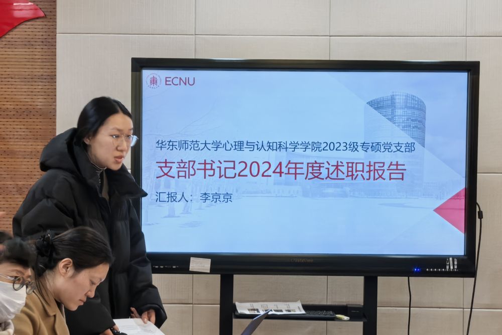 2023级学术型硕士研究生党支部书记陆海昕从支部组织建设、党员学习教育等方面汇报了支部工作开展情况及成效。支部深入学习党的二十届三中全会精神、教育家精神;结合校史馆参观、支部书记上党课、集中培训,强化党纪学习教育;支部担任校史馆志愿讲解队,参加俞立中校长档案捐赠仪式,学习档案中蕴藏的师大精神和家国情怀。针对研究生党支部凝聚力不强、党员先锋模范作用发挥不明显等问题,陆海昕表示将进一步夯实支书工作能力、开展支部间“联建共建”活动;深入调研支部党员和群众需求,开展贴合群众需求的支部活动。