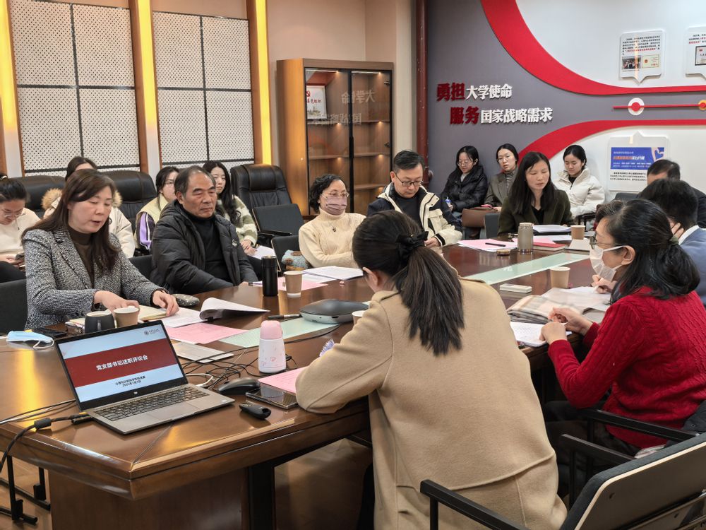 教工第二党支部书记李春霞从强化思想教育、加强纪律建设和聚焦教育发展三个方面汇报了工作开展情况及成效。支部扎实推进各项党建基本工作,结合主题党课、讲座学习、专题讨论、实践教学等方式落实党员基本培训,坚定理想信念、强化党纪学习教育。作为教工党支部,学习贯彻党的二十届三中全会精神和全国教育大会精神,结合学科发展新要求,明确教育工作者的责任与使命。李春霞表示,后续将创新学习机制,强化政治理论学习;发挥教师党支部特色,加强党建与业务互融互促;凝练标志性成果,打造党建品牌。