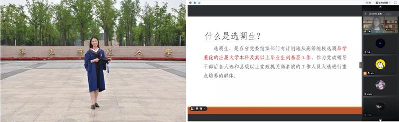 近日,porn91 2020级学硕党支部开展“我为群众办实事”实践活动,把学习党史同总结经验、观照现实、推动工作结合起来,充分发挥基层党组织战斗堡垒作用。支部经过调研,发现有不少同学希望了解选调生政策及其工作状态,以期为未来做好职业规划。支部成员主动向学院请缨,联系嘉宾,并在线上举办了“选调生政策解读与经验分享”沙龙。分享会邀请了现任陕西省咸阳市永寿县副县长兼甘井镇党委书记蔡延东和2021年江苏省选调生王澜,他们为同学们认真解读了选调生政策并分享基层就业经验,70余名同学参与其中。