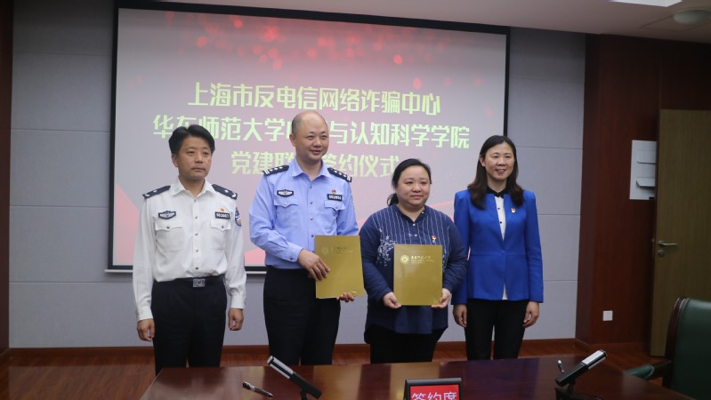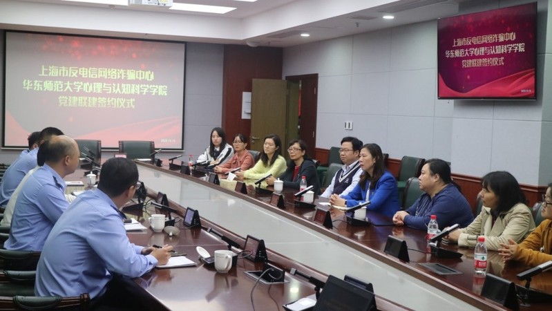 10月16日下午,华东师大porn91 与上海市反电信网络诈骗中心举行党建联建签约仪式。上海市公安局刑侦总队副总队长姜伟良、九支队政委钱世平、文保分局刑侦大队副大队长徐凤伟及porn91 党委书记方媛、党委副书记兼副院长庄瑜、党委委员孟慧、刘晓陵、教师代表李林及辅导员、学生党支部书记参加了签约仪式。