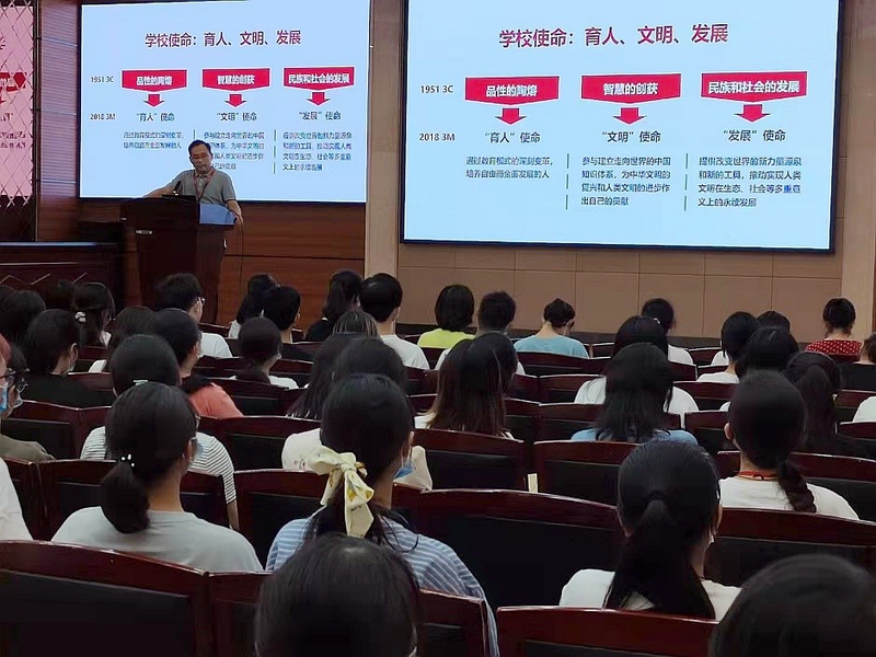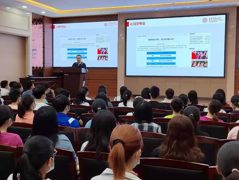 学院副院长郝宁为同学们作了院史教育讲座。从1951年至今,心理学科与华东师大一起走过了70年,取得了辉煌成就。同学们在郝老师的讲述中感受到心院的深厚底蕴,增加了归属感、集体荣誉感和使命感。