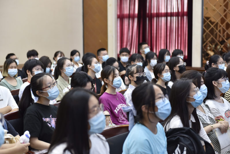学生(研究生)工作处副处长李燕为全体新生开展规则教育。李老师详细介绍了校园规章制度,叮嘱新生仔细阅读《学生手册》,并且围绕一些真实的学生案例,为同学们解析校园违纪处分办法,使“听规则、守纪律”的重要性深深埋入每位新生的心中。