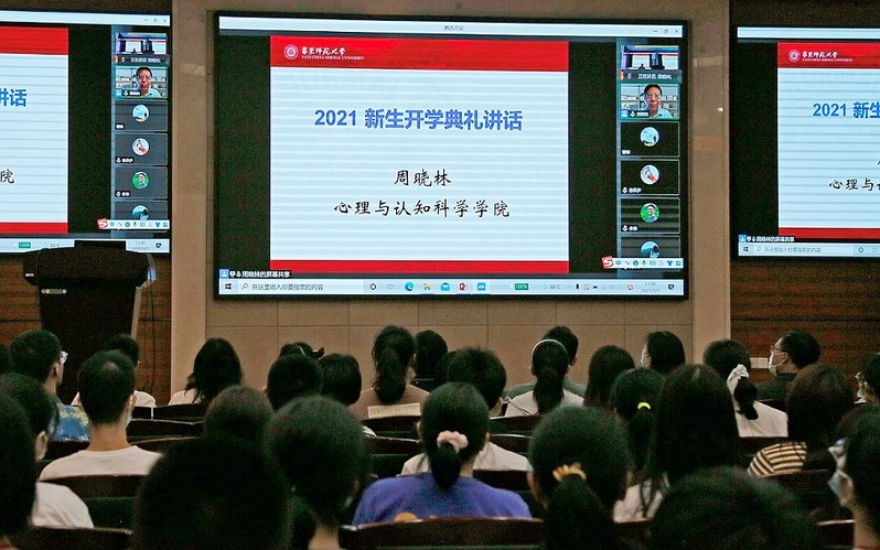 porn91 名誉院长周晓林通过线上方式,首先对2021级新同学的到来表示热烈的欢迎。他从40年前自己在师大心理学系求学时的老照片讲起,鼓励同学们坚定志向,在各类实践中锻炼创新能力、提升思维高度。当前社会对心理学人才的需求不断增加,也对同学们提出了更高的要求。周院长尤其指出,同学们要胸怀祖国,勇于担当,努力奋斗,为建设祖国贡献力量。
