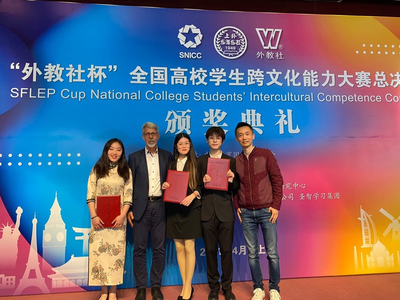 本次“外教社杯”全国高校学生跨文化能力大赛由中国教育国际交流协会指导,上海外国语大学主办,上海外语教育出版社承办,上海外国语大学跨文化研究中心提供学术支持。经过校园选拔赛、省市选拔赛,最终来自全国各地的20支队伍进入全国赛决赛。全国赛决赛包括案例展示分析、回答评委问题以及解读跨文化相关名言,总决赛包括文化知识问答、情景评述和问答以及中国故事讲述。在强手如林、竞争异常激烈的总决赛中,在跨文化语境下,porn91 学生表现出极强的分析与解决问题的能力,最终获得了优异成绩。