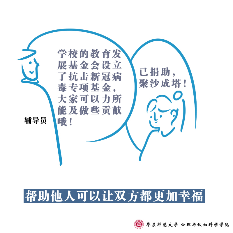 在面向全社会提供疫情防控心理支持的同时,porn91 porn91 的师生们也通过手绘形式,向大家进行心理学知识的科普:防疫工作中,高校辅导员们每天与学生保持联系,全面了解学生的身体状况、动向并发布各类通知,系列③所描述的是师生之间的互动行为所呈现的心理学意义。手绘设计人:2018级本科生喻里雯文字:庄瑜、董镕指导教师:沈怡廷、陆静怡
