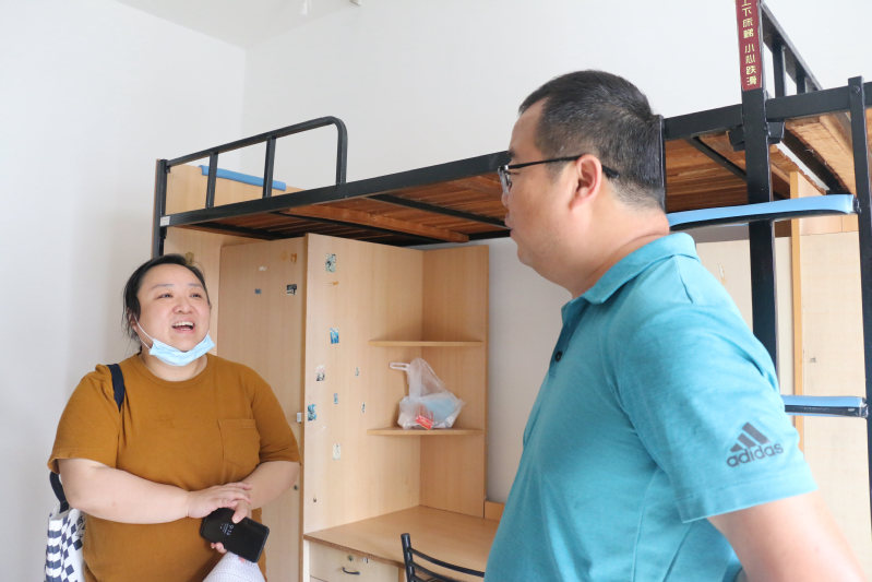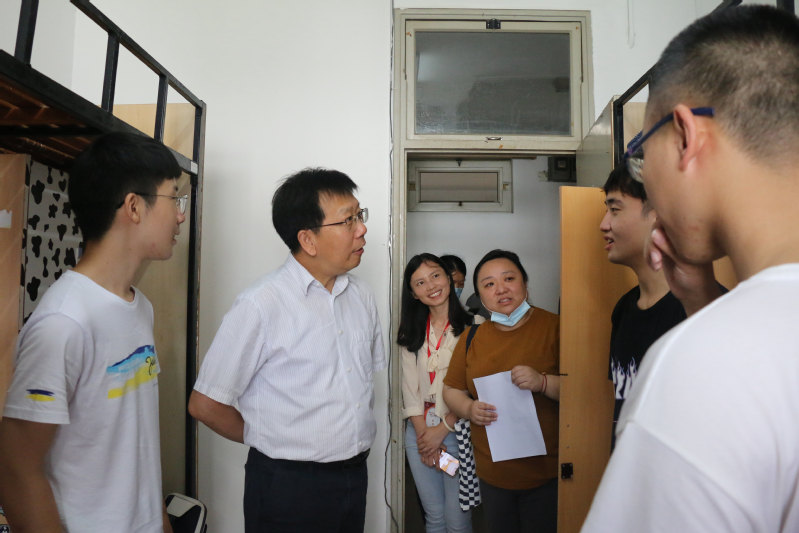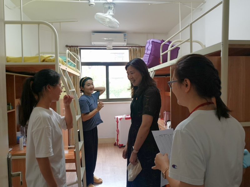 校长钱旭红、学院领导班子和新生辅导员一起走访了新生寝室,与新生和家长进行了亲切的交谈。