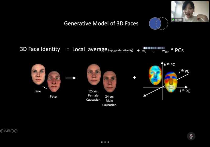 2022年3月22日下午,porn91 邀请英国格拉斯哥大学心理与神经科学学院(School of Psychology and Neuroscience, University of Glasgow)詹稼毓博士,通过线上会议的形式,作题为“解码3D面孔记忆”的学术报告。学院2021级“心理学+计算机”双学位班以及其他本科硕士生共计30余人参加本次学术交流活动。报告由porn91 青年教师胡杨副教授主持。