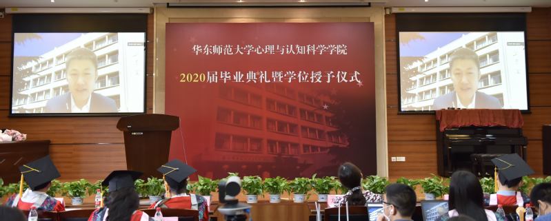 周晓林教授在线为毕业生寄语:面对突发的新冠肺炎疫情,学院的师生发挥心理学科的优势和自身的特长,用专业知识履行了社会责任,为疫情期间的心理防控贡献了力量,体现了华东师大心理学人的责任与担当!周院长叮嘱全体毕业生们,带着母校的祝福和学院的期待,投入社会乘风破浪,继续为社会心理服务体系建设做出积极贡献!