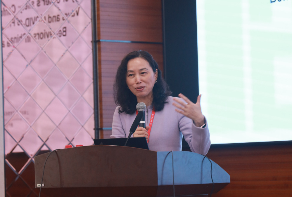 上海交通大学唐宁玉教授作了题为“遵从价值观与新冠肺炎预防行为”的报告,她从“规则遵从和人际遵从”的理论出发,研究了中美文化差异在规则遵从价值观和个人遵从价值观上的体现,发现在两国被试中规则遵从都与预防行为成正相关,表明价值观和行为的关系可能存在跨文化稳定性。