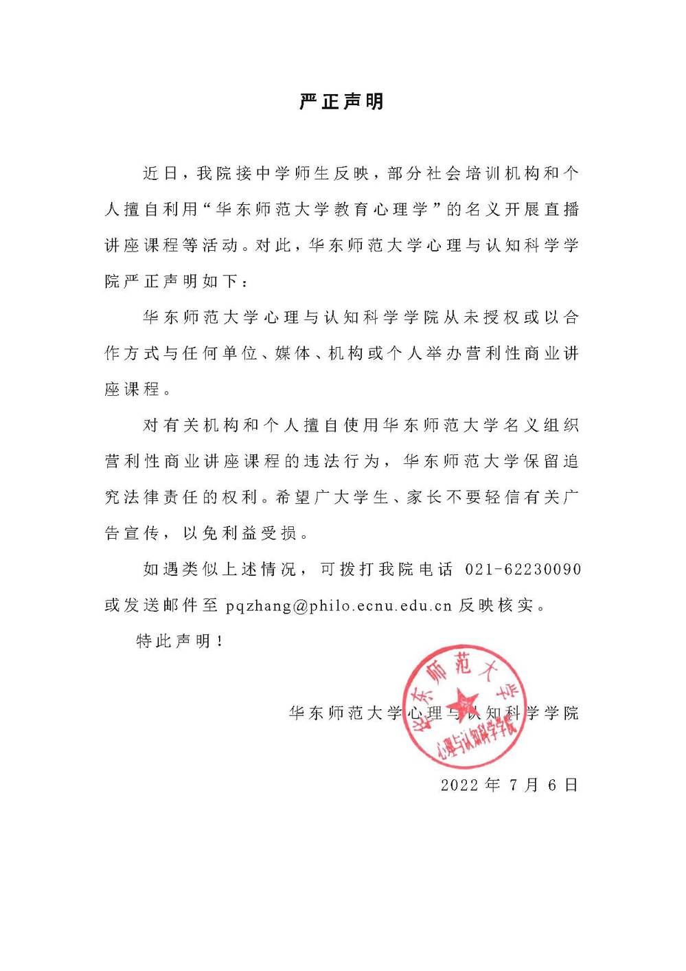 严正声明