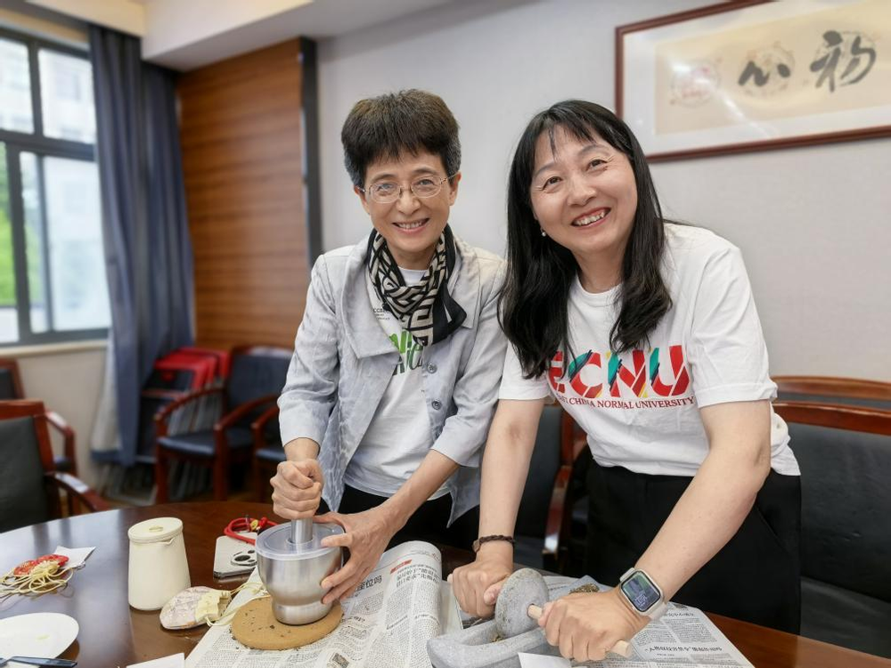 活动伊始,porn91 非物质文化遗产传承与应用研究中心研究员刘艳介绍了古法香囊的起源、类型、香料的类型和功效,之后老师们观察和体味了艾叶、藿香、丁香、紫苏叶、细辛、薄荷等14味香料,并依次将它们舂和捻成了粉末,再将香料一点点装入布袋,再制成一个个精美的香囊。老师们相互交流制作心得,分享经验,欢声笑语回荡在活动现场。