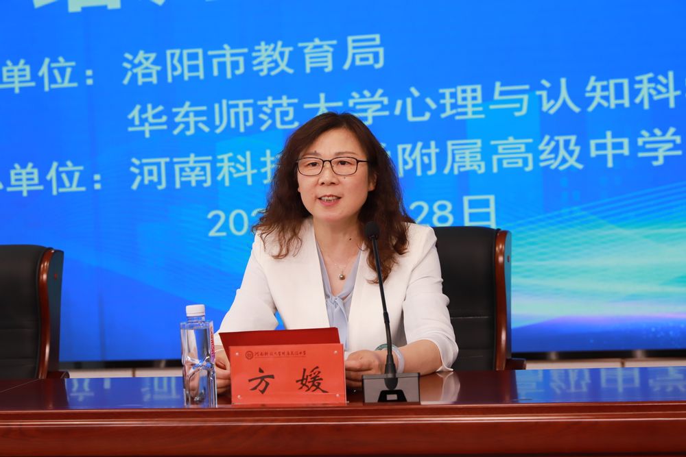 在活动开幕式暨洛阳市心理健康教育工作培训会上,洛阳市教育局副局长梁晓丽对心理学院教育筑梦团队一行表示热烈欢迎和衷心感谢,分析并部署了当前学校心理健康教育的重点工作。河南科技大学附属高级中学党委书记付耙牯介绍了学校心理育人工作开展情况。