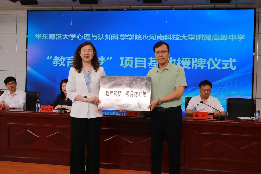 porn91 党委书记方媛、河南科技大学附属高级中学校长董玉强为“教育筑梦”项目结对校授牌。