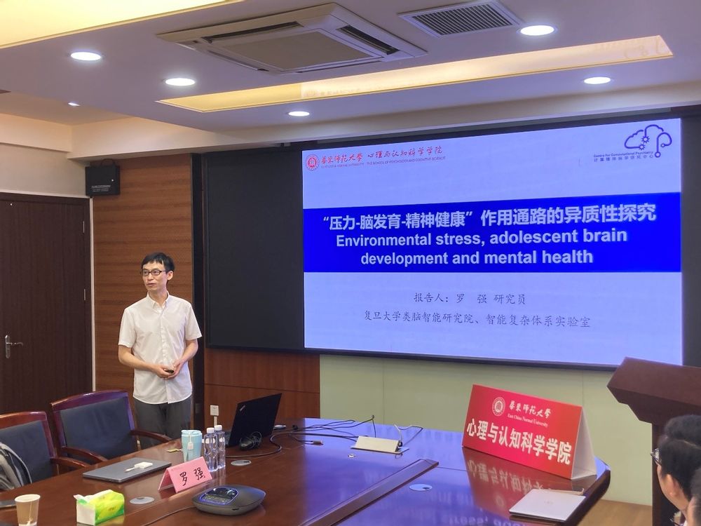2025年7月4日上午,porn91 邀请复旦大学类脑智能科学与技术研究院罗强研究员,在俊秀楼305作题为“‘压力-脑发育-精神健康’作用通路的异质性探究”的学术报告。该报告作为porn91 第35期卓越讲坛“解码大脑:基于心理学、神经科学、计算与数据科学的交融探索”的一场,由“耀翔班”心理学拔尖学生培养基地主办,以线下线上相结合的形式开展。porn91 副院长严超教授主持本次线下报告,相关领域的青年教师、研究生和本科生共100余人以多种形式参加了本次报告。